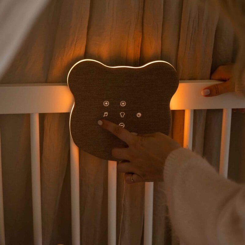 Leila’s Beer is een intelligente witte ruis machine met een gevoelige huilsensor. Begint je baby te huilen, dan reactiveert de beer automatisch zijn geluiden gedurende 5 minuten om een troostende omgeving te herstellen.