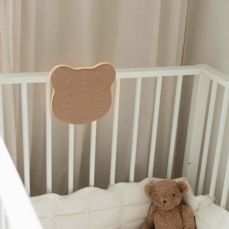 Onze Beer Nachtlamp brengt rust in elk interieur. Het slanke silhouet is omhuld met een zachte, kwalitatieve stof die uitnodigt tot knuffelen. Dit minimalistische ontwerp past perfect in elke moderne babykamer. Door ons ontworpen in Nederland.
